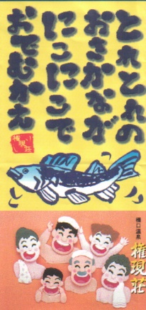 上越市のお隣、能生町の温泉宿のパンフレットです。先輩との合作で表紙の字と魚の絵を担当しました。
